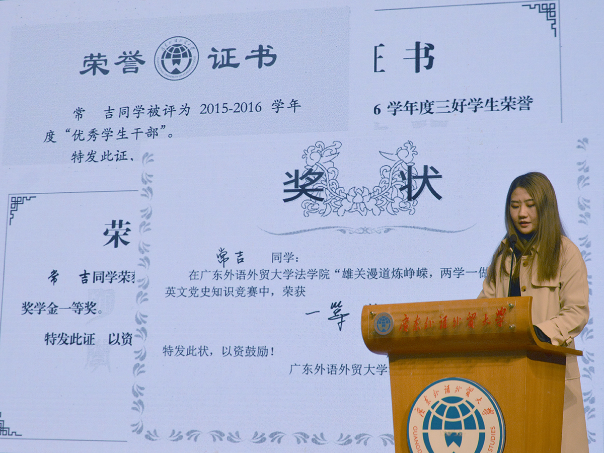学生处副处长国佳为大会致辞,她全面介绍了我校奖学金、学生管理规定、学生违纪处分条例等规章制度,结合先进班集体标兵和校长奖章获得者的成长经历,从“优秀并不遥远”、“优秀并不都一样”、“优秀需心存敬畏”等方面与同学们分享了对于优秀的定义,鼓励同学们向榜样学习。