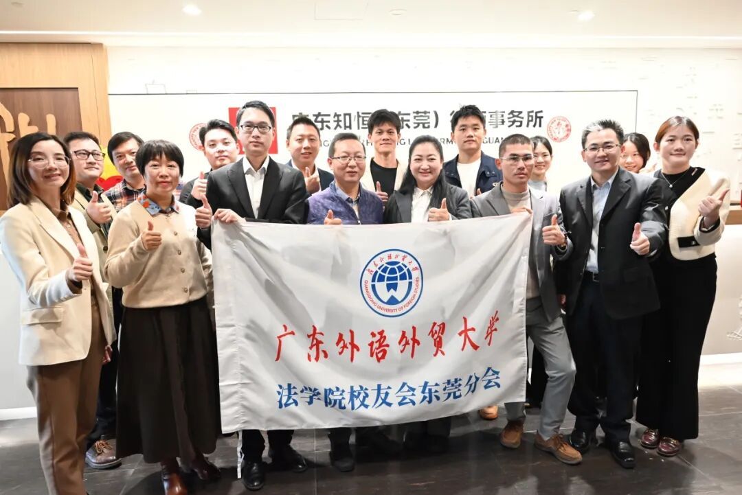 2026年1月14日,法学院党委副书记范聪、团委书记郭文锋、研究生辅导员陈粤走访广东知恒(东莞)律师事务所共建就业实习基地,知恒(东莞)管委会主任赵丹、执行主任周丽、党支部书记麦焯林及高级合伙人周键涛等出席活动。广外法学院东莞校友会会长张旭岑、副会长陈敏锋,广外东莞校友会秘书长曾晓红,广外法学院深圳校友会会长陶明阳等校友代表参与座谈。