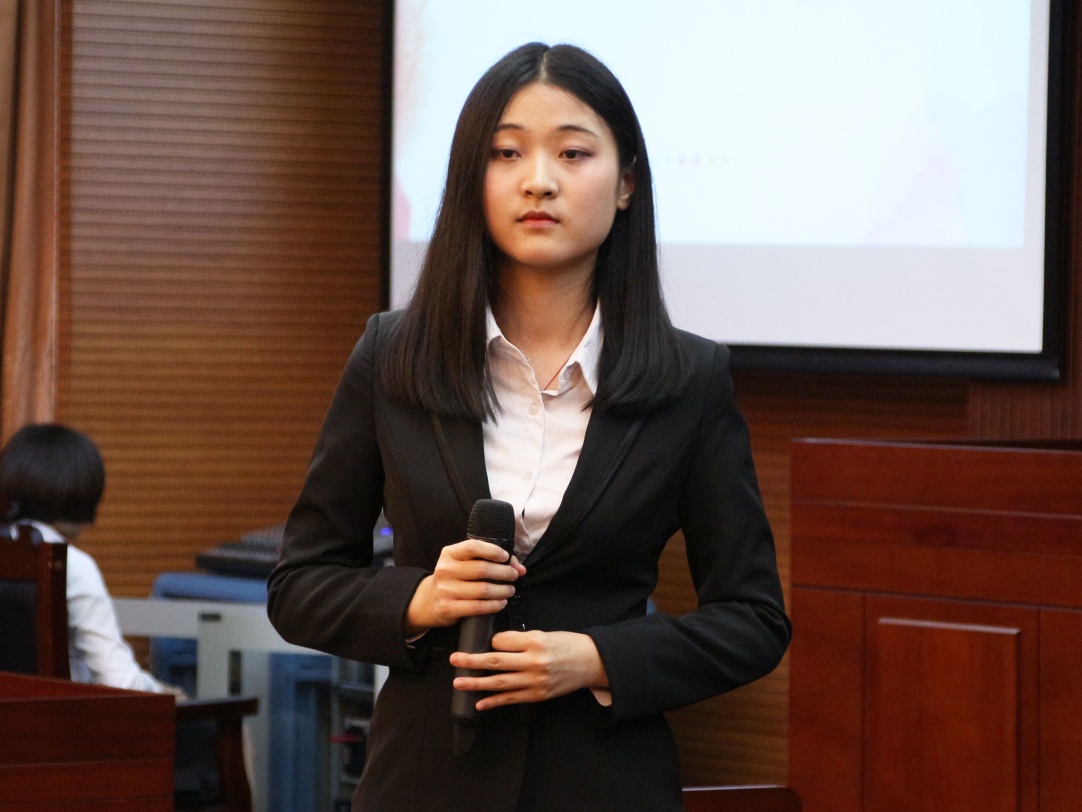 第二位展示的是15国经一班的潘弘嘉。她将日语兴趣和法律专业结合起来,志在成为一名中日涉外律师。她分别从自身兴趣、性格和技能方面进行内部分析,再从家庭、学校、社会和职业本身进行外部分析,使评委和观众对她有全面而清晰的认识。在嘉宾提问环节中,面对“作为律师,如何把经济利益和法律公益结合起来”这一问题,潘弘嘉认为,律师也可以从事法律援助,追求经济利益和法律公益二者之间并不矛盾。评委对她流畅的口头表达、丰富的实习经验和对职业前景的深度了解给予了高度的赞扬。