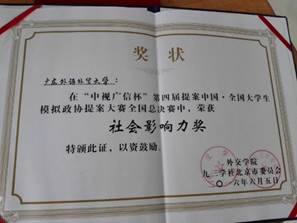 第三届全国大学生模拟政协提案大赛二等奖 最佳人气奖