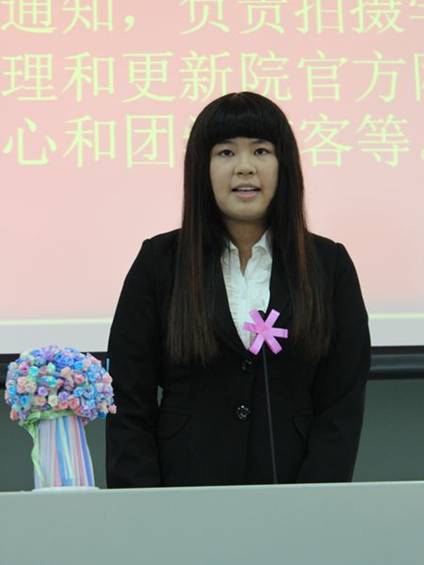 林转怡老师对13级新干事们的到来表示欢迎和肯定。同时,也对团学的主要干部们的日常工作提出几点建议:第一要握好手中的“接力棒”,勇于担当;第二要做到“德才兼备”;第三要实现学生的自我管理、自我教育、自我学习和自我发展。