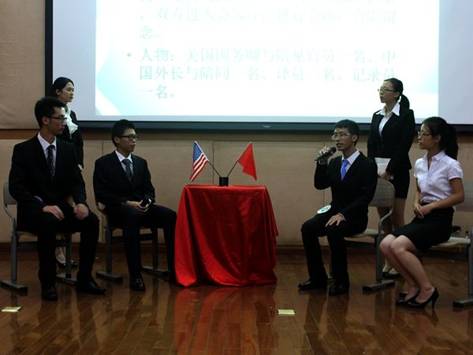 在情景模拟环节中,“Unique”队再现了黄海市副市长接见外宾时遇到突发情况的应急处理场景。“Dream Chasers”模拟了新到任的坦桑尼亚驻中国大使向中国国家主席递交国书的场景。“Lady Killers”则展示了中国外长会见来访的美国国务卿的过程。“知书识礼”队则呈现了中国旅游局局长与日本旅游局局长参加在韩国举行的两国一旅游合作协议的签字仪式。“觉悟吧,少年”队则模拟了在新春佳节期间,中国驻日使馆举行招待新春酒会的过程。