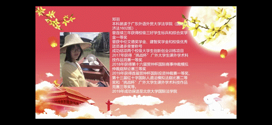 (文字:傅以琳 图片:傅以琳)10月3日晚,我院“迎中秋 庆国庆”线上茶话会暨法律职业生涯报告会通过腾讯会议顺利开展,茶话会邀请到优秀毕业生代表、武汉大学法学院研究生张芮栋和北京大学国际法学院研究生郑羽。各年级辅导员、学院2017-2020级学生参加了会议,会议由2020级辅导员韩金彪主持。