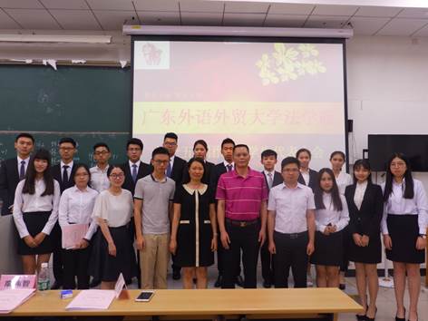 本网讯(文字:黎子琳摄影:贺国钧 网编:李洁盈) 2017年5月26日晚,广东外语外贸大学法学院第十五次团员、学生代表大会在教学楼C308隆重召开。出席本次会议的领导嘉宾有校团委苏奕书记、法学院党委周秀娇书记、林茂辉副书记、团委书记陈宇老师、辅导员范丽颖老师和廖伟智老师。
