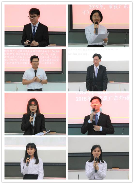 接下来,20位候选人进行竞选演讲。陈宇分享了自己多年参与团学工作的经验与感想,以及他对自我身份的定位、对团学工作的理解;曾宇航坦言道团学于他而言的归属感,并表示希望发扬携手于诚,致乐于朋的团学精神;赖萍回忆了她在不同阶段、不同职位收获的感动,她真诚地希望能把这份温暖传递下去。