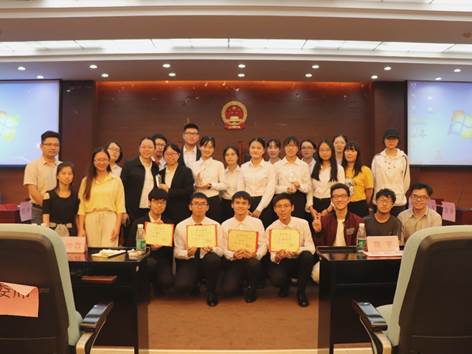 本网讯(文字:尹尚婷 摄影:李玮思 ) 10月16日晚,2019法学院新生杯辩论赛决赛在实验楼B307顺利举行。出席本次比赛的评委有法学院曾帅霖、潘学谦、陈亦欣、张旭阳、杨如梦、叶舒涵、黄熙彤,嘉宾有法学院团委书记陈宇、团委副书记赖萍、学生会主席曾宇航。最终,来自法学1905的“五五生威队”荣获新生杯辩论赛冠军,法学1906的“我说的都队”获得亚军,法学1904的“续壹秒队”获得了季军。