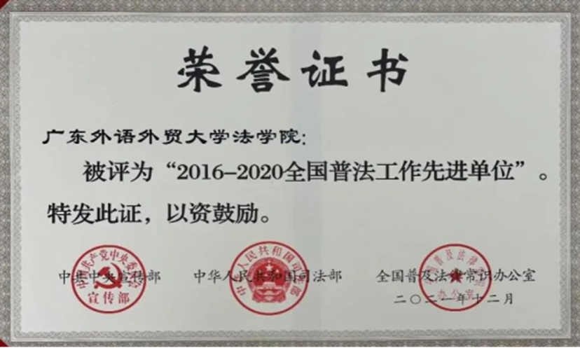 广外法学院被中共中央宣传部、司法部等评为“全国普法工作先进单位”