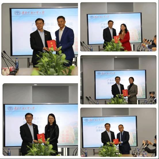 王则唐书记在致辞中,对25位校外导师的受聘表示热烈祝贺和崇高敬意。他简要介绍了我院的发展历程以及近年取得的主要成绩,特别介绍了知识城校区的基本情况。他表示实现中国梦需要依法治国和法治人才,法学教育需要实践教学和理论教学相结合,需要打破法治人才培养体制的壁垒,这也是全面依法治国的需求。同时,他希望校外导师能够立德树人,严格遵守新时代高校教师职业行为十项准则,引导学生深入社会实践,并恳请各位校外导师积极参与我院法治人才的培养过程,为广外法学学科的发展建言献策。