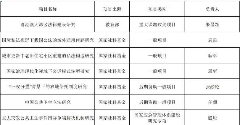 朱最新教授申报的《粤港澳大湾区法律建设研究》获2020年度教育部哲学社会科学研究重大课题攻关项目立项,为学校唯一立项重大项目