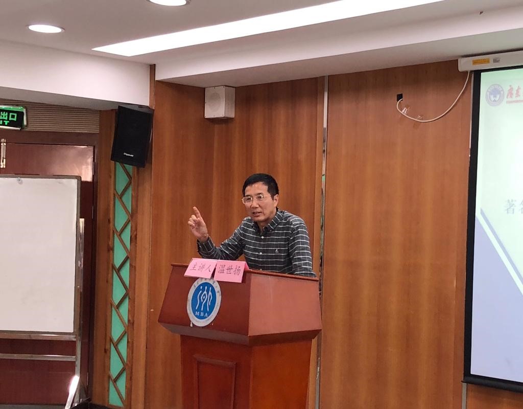 2017年11月10日下午,由广东外语外贸大学人事处、教师发展中心主办,土地法制研究院、法学院联合承办的著名教授论坛第341讲“土地制度改革与民法典编撰”在广东外语外贸大学北校区MBA教育中心(九教)306室开讲。此次论坛由中南财经政法大学法学院教授、博士生导师、《法商研究》编辑部常务副主编温世扬教授主讲。华东政法大学高富平教授、刘竞元教授,广东外语外贸大学土地法制研究院院长陈小君教授、副院长高飞教授,广东外语外贸大学法学院王荣珍教授、向明华教授等近百名师生参加论坛。论坛由土地法制研究院副院长耿卓教授主持。
