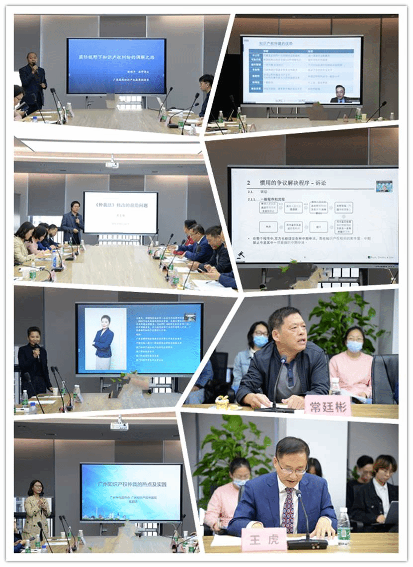 在主旨发言环节,来自国内外知识产权争议领域权威顶级专家和资深专业学者围绕“知识产权仲裁与调解”主题,分享最新前沿研究成果,解读时代性代表性热点案例。广东省高级人民法院知识产权庭原副庭长、博士、广东省谐合知识产权调解中心理事欧修平介绍了国际视野下知识产权的纠纷调解总原则、面临的共性问题及具体方法。华南理工大学法学院教授、博士生导师黄忠顺就仲裁法的修改问题进行介绍;新加坡国际仲裁中心中国区首席代表张寸渊介绍新加坡知识产权仲裁的发展情况,并展示了新加坡国际仲裁中心在解决知识产权纠纷争议方面的优势;RAJA,DARRYL & LOH律师事务所合伙人秦汉凌介绍了马来西亚知识产权仲裁与纠纷解决机制及其特点;澳门凯旋国际集团总经理、粤港澳大湾区知识产权调解中心首席调解员王爱民就粤港澳大湾区知识产权调解实务进行介绍;广州知识产权仲裁院业务副总监王亚倩介绍了广州知识产权仲裁院的基本情况和后疫情时代下知识产权纠纷解决新路径。最后,常廷彬副院长作为与谈人与参会代表就仲裁、调解与诉讼等纠纷解决机制作了简要概述。