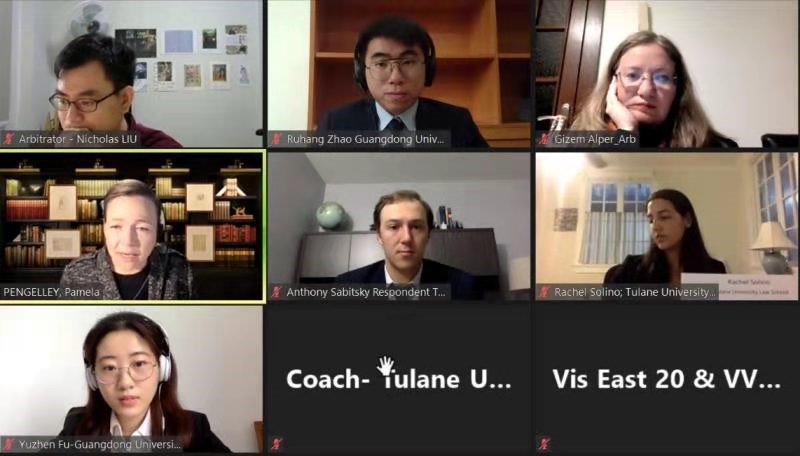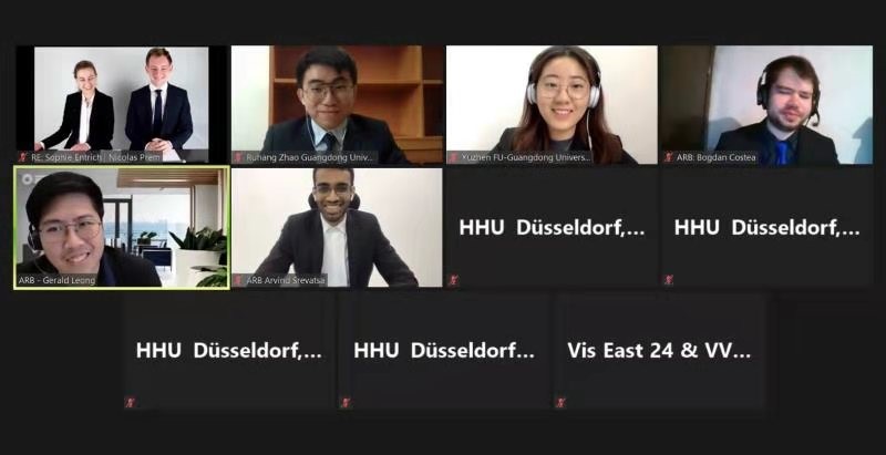 结束贸仲杯的旅程后,广外贸仲杯赛队代表队成员继续学习,突破自我,于2021年3月14日至3月21日参加了在中国香港举办的第十八届Vis Moot(东方赛区)即The Willem C Vis East International Arbitration Moot (Vis East Moot)。在本次比赛中,广外贸仲杯赛队成员先后与曼德勒大学(University of Mandalay),杜兰大学法学院(Tulane University Law School),德国杜塞尔多夫大学(Heinrich-Heine Universität Düsseldorf),马尔代夫国立大学(The Maldives National University)庭辩切磋,从容自信回答仲裁员所提问题,展现大国风采。