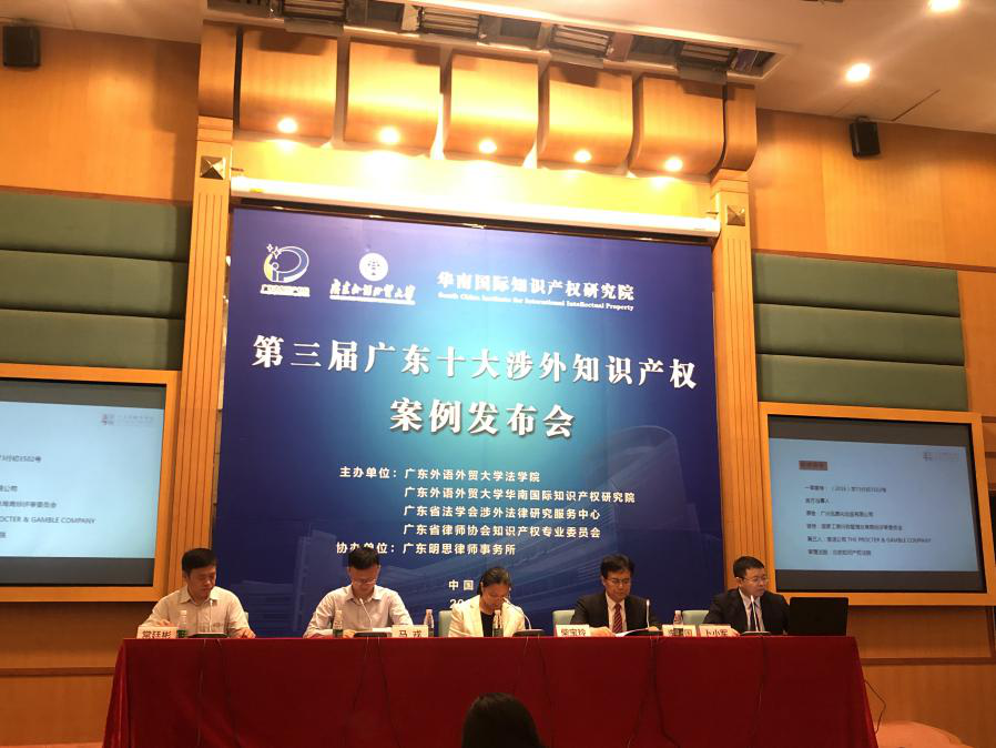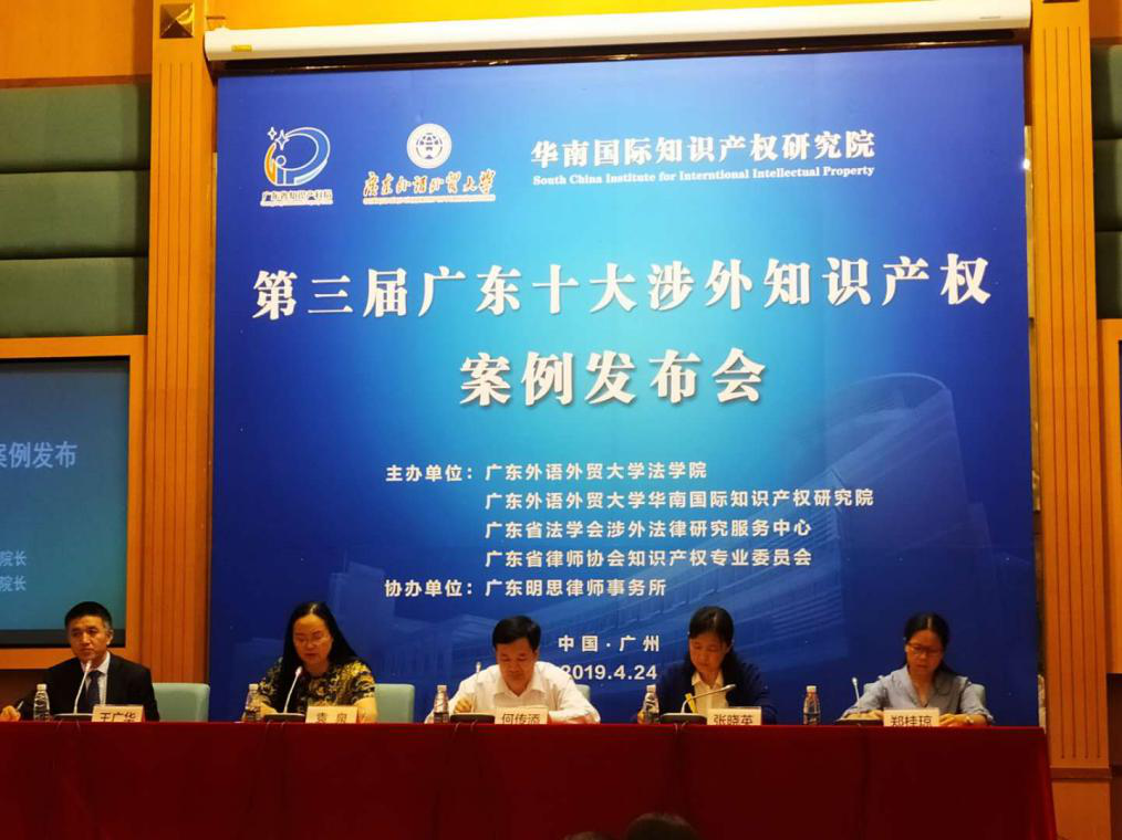 4月24日,由华南国际知识产权研究院、广东外语外贸大学法学院、广东省法学会涉外法律研究服务中心、广东省律师协会知识产权专业委员会、广东明思律师事务所共同主办的“第三届广东十大涉外知识产权案例发布会”在广东外语外贸大学行政楼国际会议厅举行。