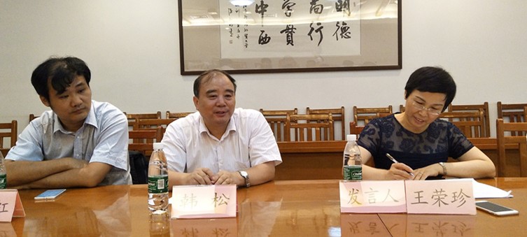 王荣珍教授就我校招收留学生的总体情况、模式进行了简要介绍。对我校法学院教师对外学术交流的情况、研究生培养的国际合作办学方式等进行了详细讲解,向楜泽能生教授表达了期待与日本早稻田大学法学院建立合作办学关系的意向。