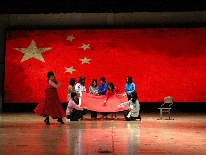 晚会以校舞队优美的表演《扇舞华篇》开场,飞扬的白裙,开合的红扇,以舞为笔,点中国红色文化发展。