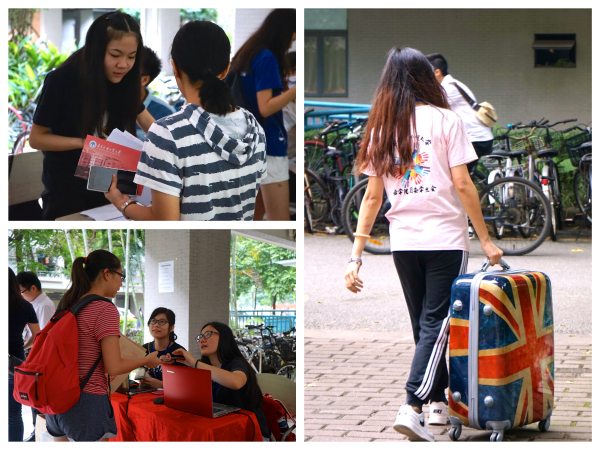 不一会儿,便有许多新生和家长陆陆续续搬着行李来到学校。在公交车站、十字路口和生活区入口耐心等候的志愿者们热情地提供帮助,把他们指引到注册处。不少新生是首次来到学校,对校园环境不太熟悉,但他们表示:“师兄师姐们都非常热心,帮忙搬运行李和带我们到报到处,十分感谢他们的付出。”