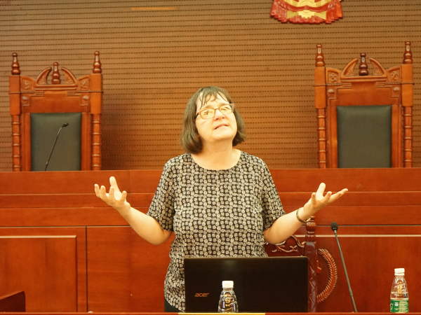 本次讲座的主题为:法律语言学研究中的作者身份认定。主讲人Janet Ainsworth是美国西雅图大学的法学教授,并于1980年成为西雅图King县的公共辩护律师协会会员。曾从事上诉和重罪部门的工作,同时也担任过培训协调员的她,在学术研究中也涉猎很广,包括应用语言学研究的法律问题、刑事诉讼、女权主义批判理论、未成年人法、比较法等,并在同行热评的社科期刊和法律评论刊物上发表了大量由她所撰写的书的篇章和文章。