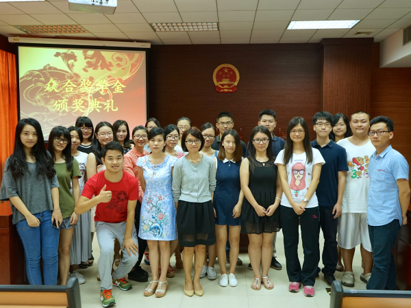 本网讯(文字:王少华 摄影:刘和亲 网编:谢晓雯) 7月2日下午,2014-2015年度法学院众合教育奖学金颁奖典礼在实验楼A302小模拟法庭举行。出席本次颁奖典礼的嘉宾有法学院的郭嫄老师以及众合教育代表杨万里、邓婉媚和高海老师。