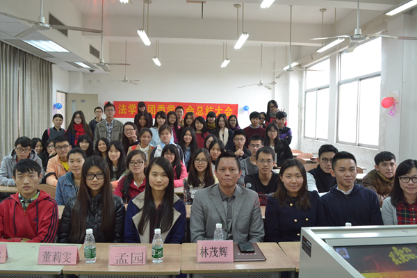 本网讯(文字:刘欣雅 摄影:何嘉星 陈晓彤 网编:谢晓雯) 时光荏苒,2014年即将过去。随着学期进入尾声,本学期法学院团委学生会的所有工作也即将结束。为了总结本学期的工作经验,提高团学各成员的工作能力与思想觉悟,更好地推动整个团学的发展,法学院团委学生会在2014年12月25日于教学楼G209召开了团学研讨会暨工作总结大会。出席本次大会的嘉宾有法学院党委副书记林茂辉、法学院团委书记刘青以及主席团全体成员、各部门部长和部分团学干事。