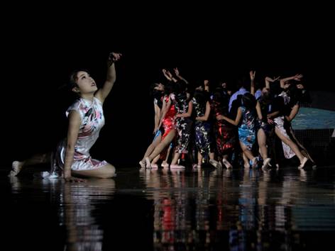当缓慢而有节奏的音乐响起,聚光灯也随之亮起,舞台中站着14位“风尘女子”随着音乐舞动。这是法学院title舞队以《金陵十三钗》为原型,为观众带来的舞蹈——《秦淮景》。枪声响起,战火纷飞,身着旗袍的女子与衣着学生装的同学们用舞蹈展现出当时的挣扎情景。最后,全部人托起“玉墨”,一同望向远方,像是在祈求和平安定的到来。