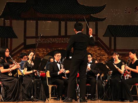 幕布缓缓拉开,随着指挥棒轻轻挥动,号声吹起,鼓声奏响,萨克斯低低吟唱,各种管乐器和谐地交织在一起,美妙的和声在会堂内回荡。校管乐团带来的《长江之歌》气势磅礴,抑扬交错,给人以听觉上的享受。