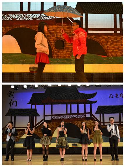 有别于开场以来回顾历史的红色经典,法学院话剧队表演的话剧《那年我们》则演绎了一段发生在青葱岁月里的温馨又清新的校园爱情故事。全情投入的表演唤起了在场观众对那青春年华中曾有过的甜蜜往事的回忆。