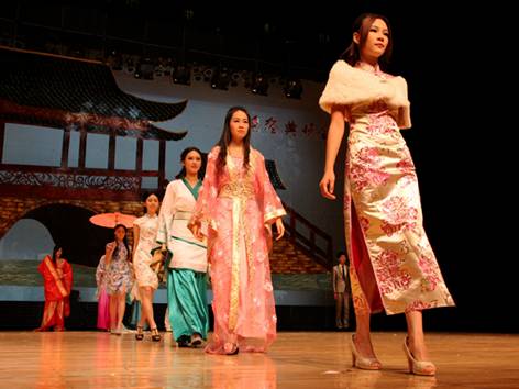 不同时期的服饰,展现了不同时代的特征。法学院模特队中气宇不凡、风度翩翩的男生们以及各位秀丽端庄抑或绰约多姿的女生们为观众带来了一场视觉享受——《风·雅》。随着音乐行走的步伐,昂首阔步中展现了中国从古代到近代的服饰变迁。