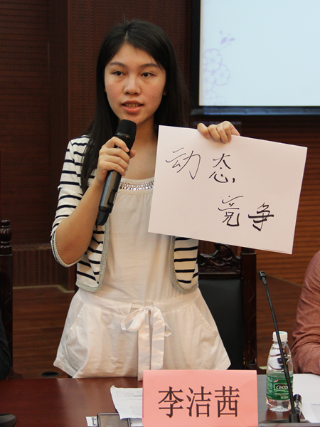 首先进行的是表明立场环节。来自华工的王凡、梁雪钰、李洁茜,广外的黄小嘉,华师的陈筱筠都不支持简单废除“985”和“211”计划,而来自华师的罗智、广外的王聿亮、王宏宇则认为该项计划应该叫停。陈筱筠认为(教育资源)平均(分配)是最大的不公平,而王聿亮却不认为废除这项计划便是“平均主义”;李洁茜虽然不支持废除此计划,但提出应该引入动态竞争机制;罗智表明“应该有规则地叫停,不应操之过急”。