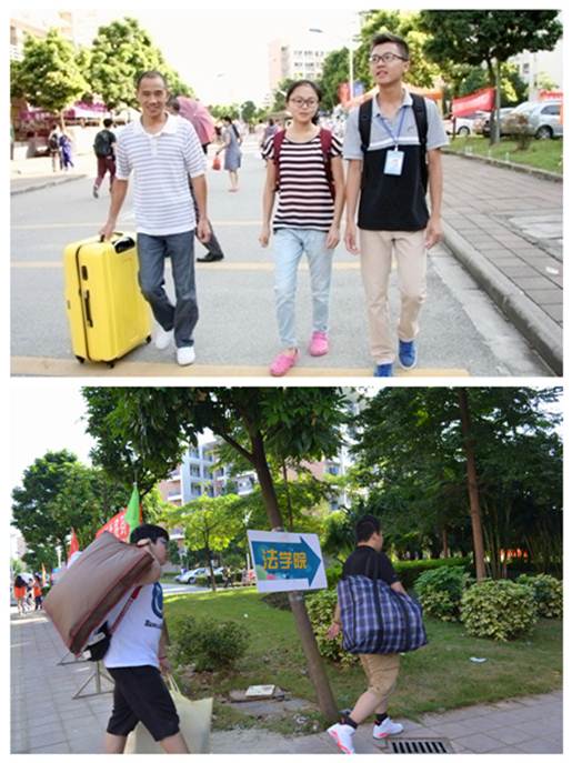 大多数的新生都是第一次到大学的,所以全家都来送行了。对于这道大学特有的且日益普遍化的风景线,法学院副院长王树春表示:我们那时很少这样的,现在的孩子第一次上大学,很多父母都很重视、很紧张,所以经常可以看到全家老老小小都来了。这也很正常,因为现在很多学生都是独生子女了。同时,王树春还透露,由于家长很多,所以对于家长安置问题,除了学校的招待所之外,往年还开放体育馆来解决家长在报到这几天的住宿问题,今年会根据实际情况而定。