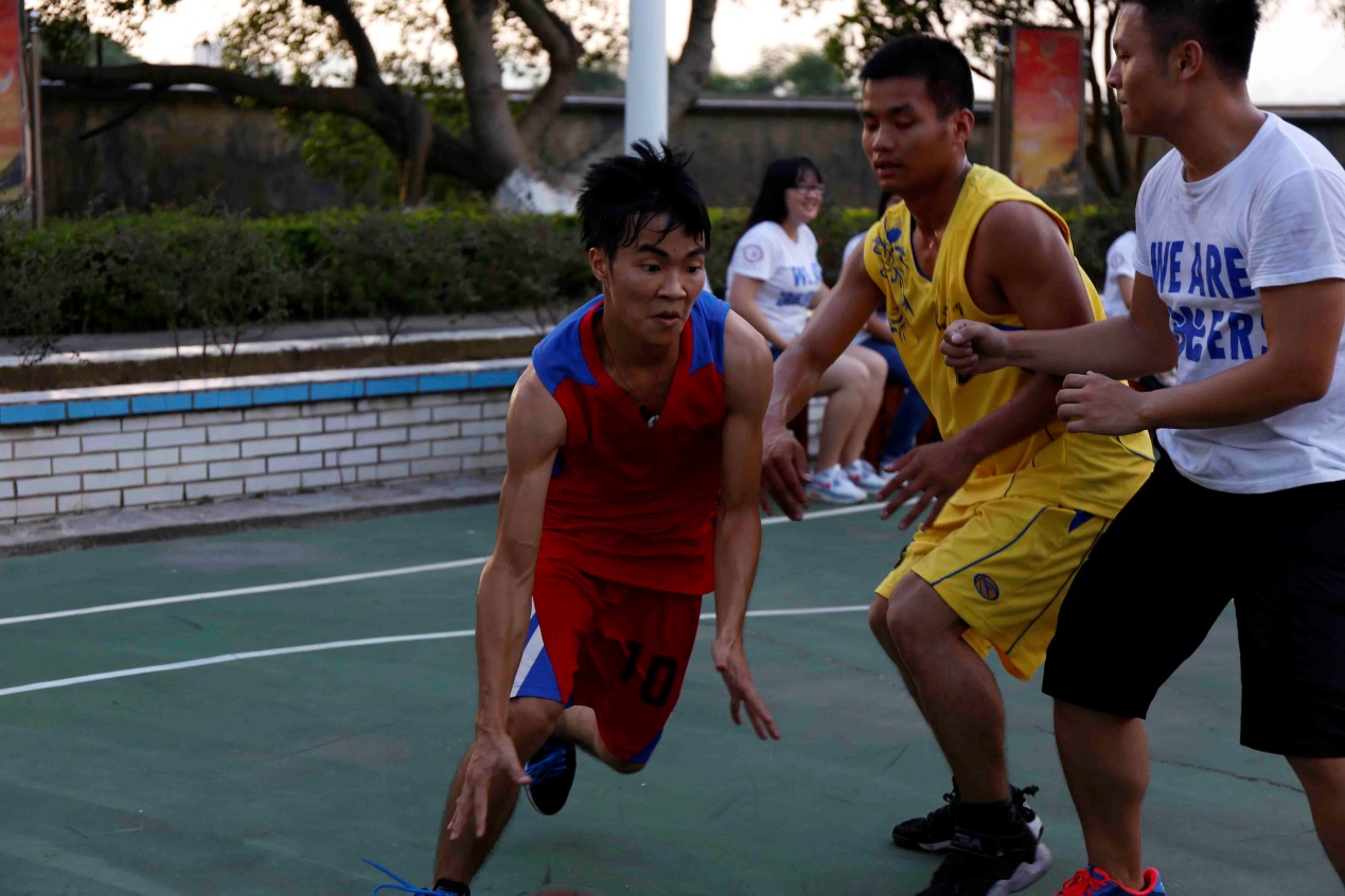昨天晚餐过后,武警官兵与凝光男队员的友谊篮球赛就开始了。在比赛伊始,武警官兵们就凭借良好的身体素质占据了绝对的优势。无论是带球、过人,还是助攻、投篮,武警官兵们都十分轻巧娴熟,特别是在奔跑的速度上,尤其出色。半节过后,武警官兵们已经领先10分。但是,凝光的男队员们也没有放弃追赶比分,即使在落后的情况下仍然奋力追赶,咬住比分。在第一节比赛结束时,没有使分差再度扩大