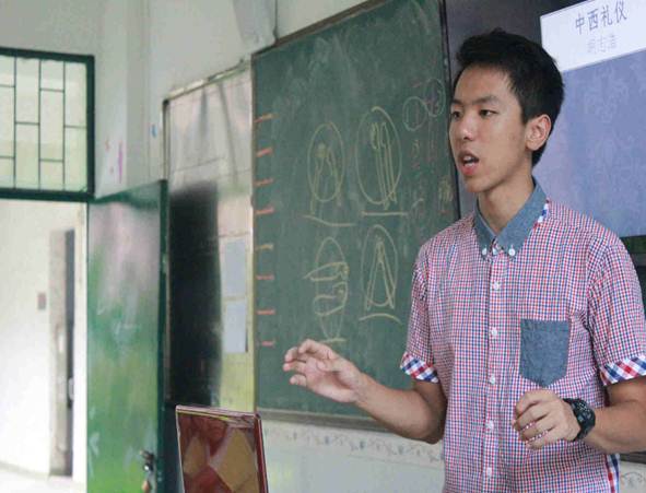 学生讲解自己对中国礼仪和西方礼仪的认识
