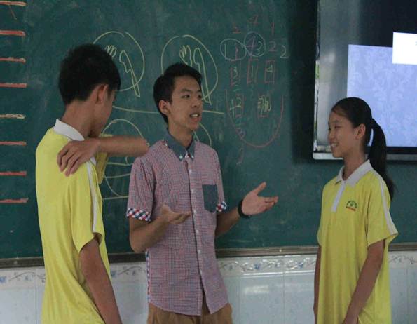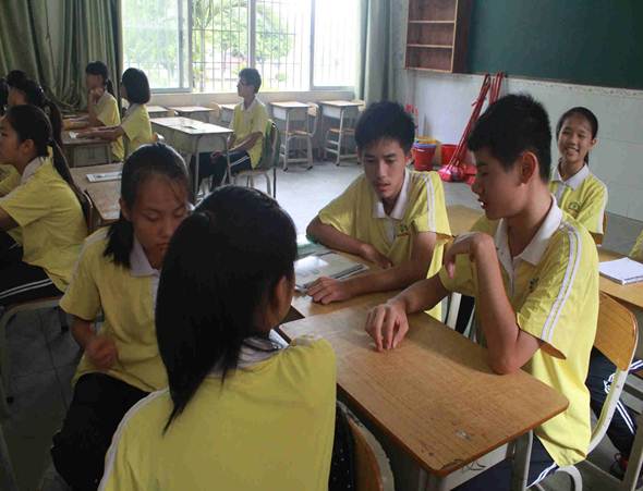 同学们分小组认真地讨论国际礼仪当中,坐车位置的礼仪关系