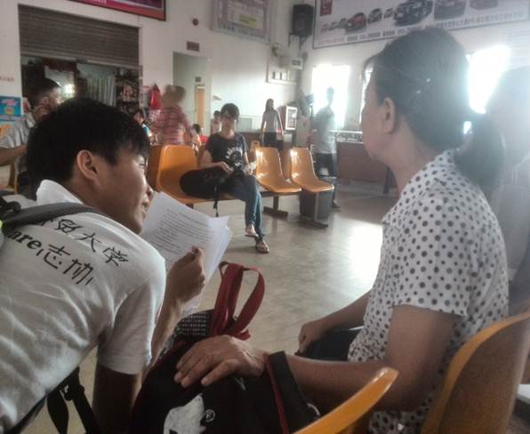本网讯(文字:陈琳燕 摄影:曾仲君 李梓濠 编辑:庄婉宜) 7月16日,法学院Care志协“凝光”社会实践服务队调研组已经顺利进行了两天的调研。第三天,调研组继续前往英德城西车站,就英德市城乡客车超载的问题,向车站的乘客们派发调查问卷,进行调研活动。