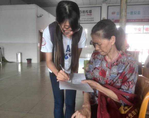 罗嘉欣给老奶奶读问卷问题