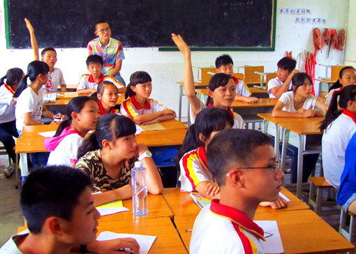 本网讯(文字:吴蔼怡 摄影:梁一鸣 编辑:庄婉宜) 2014年7月18日,广东外语外贸大学法学院“一米阳光”三下乡服务队迎来了第三天的义教活动。经过了两天在课堂上的接触和交流,同学们与老师的感情日益升温。今天的课程生动新颖,形式多样,充分调动了学生的积极性,同时也增进了同学之间的交流。