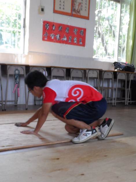 第一天,虽然简陋的食宿条件有些超出志愿者们的预期,但积满灰尘的教室显然无法阻挡志愿者们的热情。放下重重的行李,Together的队员们迅速开始了对“寝室”的布置工作。搬移课桌椅、拖地、放下床板、铺上草席,一切都有条不紊地进行着。