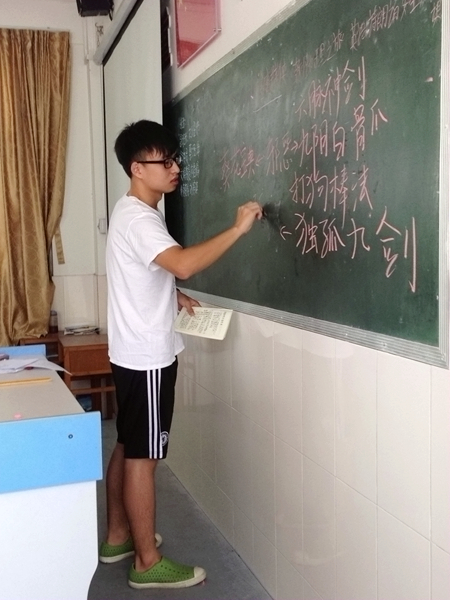 除了金庸群侠鉴赏课、时事课以外,国政三下乡义教组还结合实际情况和专业特长开设了漫鉴赏课、体育课、趣味历史、英语诗歌朗诵、英语电影配音、地理知识、话剧和电影赏析、手语课、趣味单词、普法课、歌唱课、多国语言学习课以及手工课。此外,在教学之余,我们还穿插了趣味运动会、告别会等活动,旨在丰富同学们的课余生活,充分体现寓教于乐的教育理念。