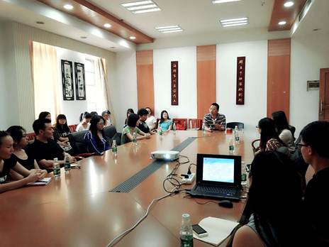 本网讯(文字:欧铭希 摄影:欧铭希 编辑:庄婉宜) 2014年6月9日上午十点半,主题为“从广外到喀什——07外交冯卓怡的援疆路”的座谈会在院系办公楼401顺利举行。与会人员有法学院党委副书记卢海清,团学指导老师刘青,2011级辅导员郭嫄,经贸学院辅导员林颖璐,法学院团学主席蓝涛,外交学社社长汤晓雪,就读于法学院的新疆学生以及国政外交学专业的学生代表。