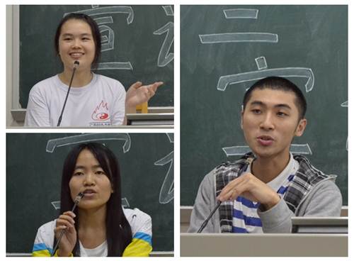 嘉宾分享环节中,被邀请的嘉宾分别是:12法六刘晓驰,执梦·织梦三下乡服务队队长;12法二吴廷廷,DreamMakers三下乡服务队副队长,后勤组组长;吴子滢,12法五,筑梦者三下乡服务队义教组组长。这一环节也是宣讲会的重点环节,嘉宾们的到来很快便丰富了同学们的笔记。作为去年三下乡实践活动几只队伍的队长,嘉宾们传授了不少宝贵的经验:在指定策划时,最好先分组做部分策划,再由部长修改完善,整合为最终策划;在义教方面,要考虑好讲课科目,并提前准备好教案,与校方多多联系,发展良好的合作关系,同时还要列出各种突发状况,提前考虑好应对措施。在后勤方面,吴廷廷特别强调分工要明确协调,物资准备等要充分且不浪费,多多注意天气并及时提醒,提前踩点了解当地风俗习惯与教学设备。