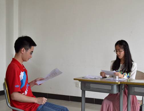 本次招募的面试官有学术部成员和部分在一轮面试中成功晋级的同学。不同于一轮面试的辨析题、案例分析等题目,此次的面试有情景表演和模拟对白两部分。二轮面试更看重的是面试者表演方面的能力,所以面试官经常会在开始时询问面试者之前有无表演方面的经历。