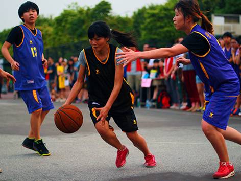 篮球赛尚未开始,两队的球员们纷纷热身,做好准备。法学院女篮的支持者们开始喊加油口号,场上的气氛逐渐炽热起来。时至五点,一声哨声划过天际,“狭路相逢”的两支队伍展开了上半场的对决。比赛开始,管院女篮队员们展开进攻,一个快攻,首进一球。我方球员也不甘落后,紧追不舍,快速传球,默契配合,一个抢板,快速追得一分。双方你争我抢,实力相当,不断刷新比分。引得场下观众欢呼声,呐喊声此起彼伏,比赛不断升温。