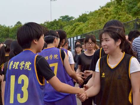 中场休息,法学院的支持者前去给队友们递上饮料,鼓励大家再接再厉。队员们深受鼓舞,士气大振,她们相互打气,以更加高亢的热情投入到下半场的比赛当中。