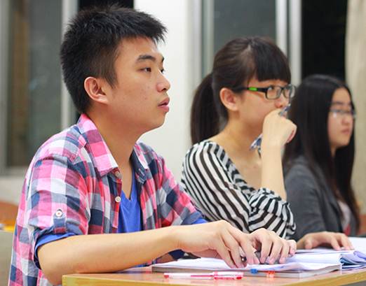 评委认真听选手辩论并适时提问