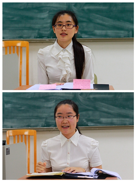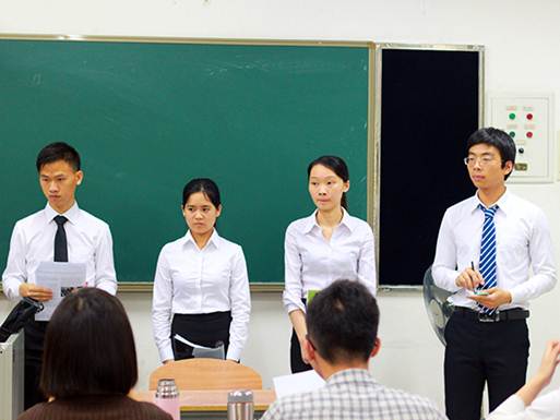 赛场上,每位选手都身穿正装,手持装满资料的文件夹,显得专业而精神饱满。选手口头辩论的时候,充当法官的评委们会适时中断辩论,根据选手的答辩内容提问。如提问某法条在此处是否有约束力,对某案例的理解、该案例在此处是否适用。面对提问,有的选手会思考片刻,坚定自信的作答;有的选手会熟练地翻开事先准备好的资料,边朗读边保持跟评委的眼神交流;有的选手对问题始料未及神色紧张,评委则会问其他问题或示意其继续口头辩论。