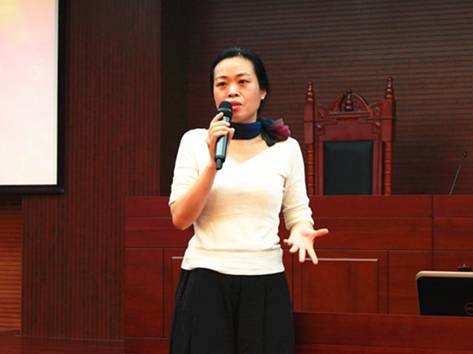 接着就是杨斌的现场演讲。她列举了在办案过程中对其影响较大的几个瞬间。在讲述自己90年代办理一个大学毕业生盗窃公司财物案件时,她后悔自己在当初没有做得更多,因为一个判决的生效意味着这将改变这个年轻人的一生。在不断地反思中,杨斌也从办案初期人称花都检察院最“冷酷无情”的检察官向有“温度”的检察官转变。在如今的办案过程中,她更加地注重细节和背后的社会背景。她讲到:“当接触到越来越多的刑事案件和社会现实,你会越发产生一种悲悯。”正是由于感觉到个人力量越来越有限,杨斌就萌发了发起“天祥”关爱计划的念头。她希望更多的同学能积极参与到这个计划去当志愿者。