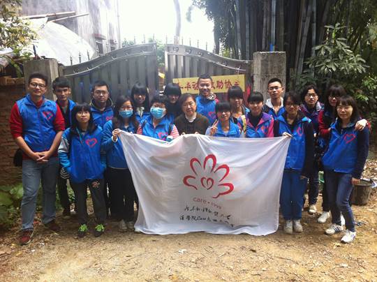 本网讯 2014年3月22日,广东外语外贸大学法学院Care志愿者协会组织干事及志愿者一行共17人于早上7:00赴往广州市萝岗区黄竹园村华华动物救助协会,进行了关爱流浪猫狗的志愿者活动。