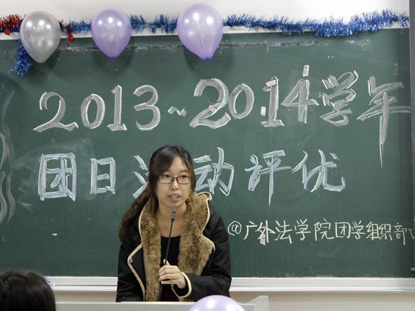 本网讯(文字:陈莹昌 欧铭希 摄影:陈昱秀 编辑:邱小艳) 本着表彰先进班集体、选出最优秀的团日活动的目的,广东外语外贸大学法学院于2013年12月14日晚在教学楼C206进行了2013-2014学年团日活动评优。法学院12、13级的各个班级的团支部参与了此次的评优活动。