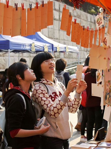 同学们在“师姐大甩卖”认真选购古风明信片