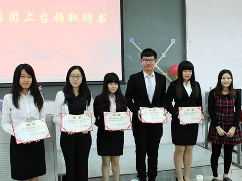 在颁发聘书的环节。林转怡老师先为主席团成员颁发了聘书,而后主席团成员也为各个部门的部长、副部长颁发聘书。