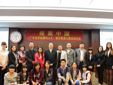 (二)启动、培训:邀请政协委员、人大代表及校友参加“提案中国——广外法学院模拟人大、政协提案大赛启动仪式”,并通过讲座的形式对学生进行赛前指导。